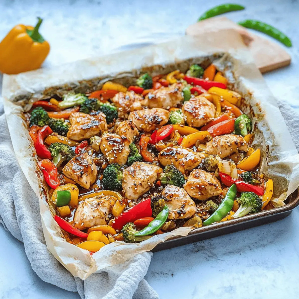 Preparing your Clean Eating Sheet Pan Teriyaki Chicken + Veggie Stir Fry in advance is a fantastic way to streamline your weeknight meals! You can marinate the chicken in the homemade teriyaki sauce up to 24 hours before cooking, allowing the flavors to penetrate deeply. Additionally, chop your vegetables and store them in airtight containers in the refrigerator for up to 3 days. When you’re ready to serve, simply arrange the chicken and veggies on the baking sheet as instructed, bake together, and enjoy a wholesome meal with just a little effort! This time-saving method will ensure you have a delicious, fresh dish that’s ready when you need it most.
