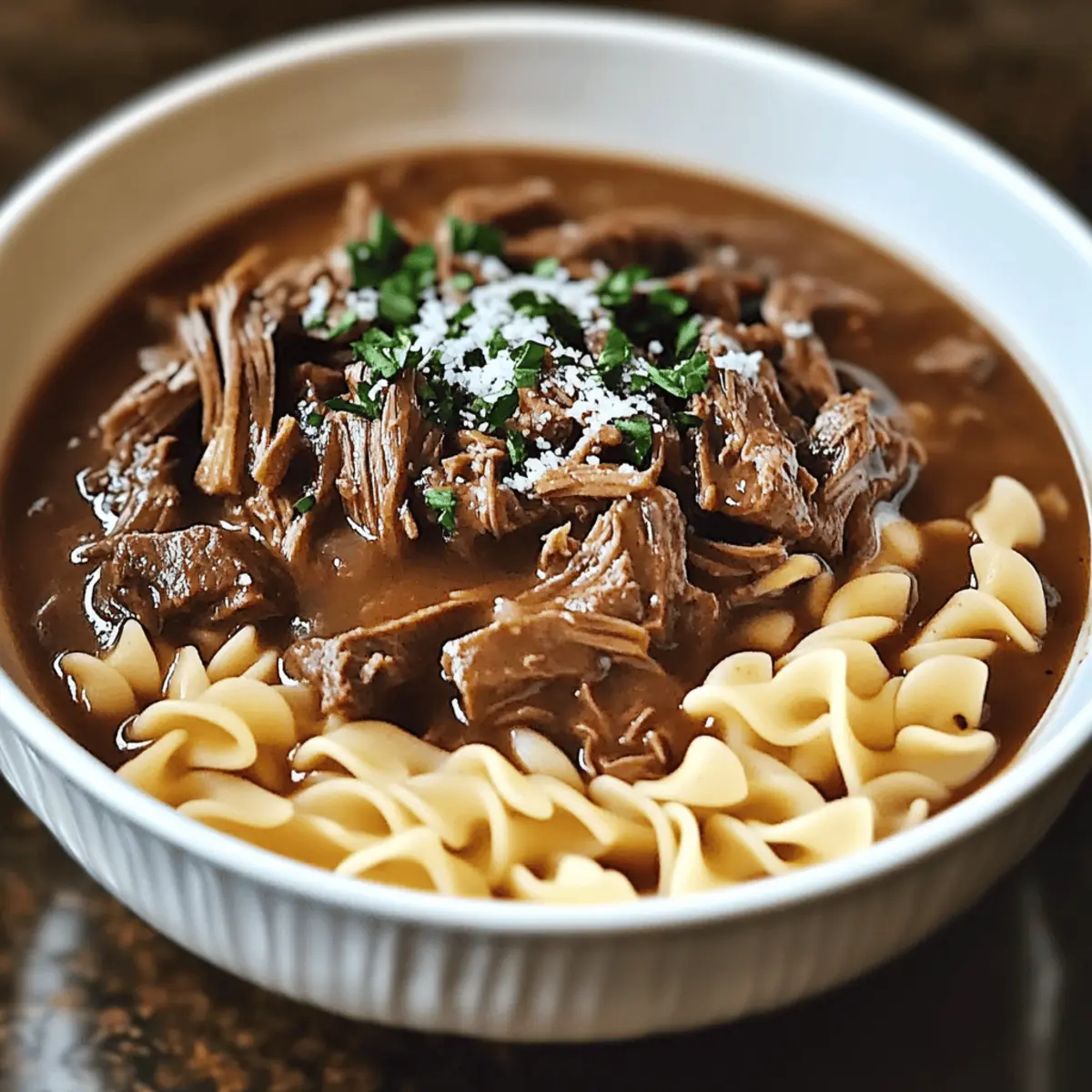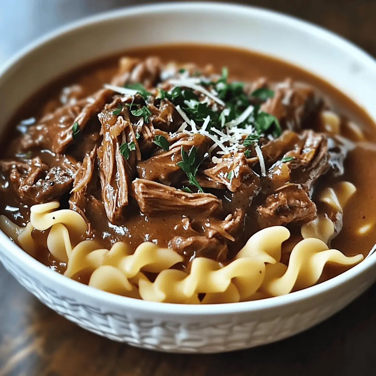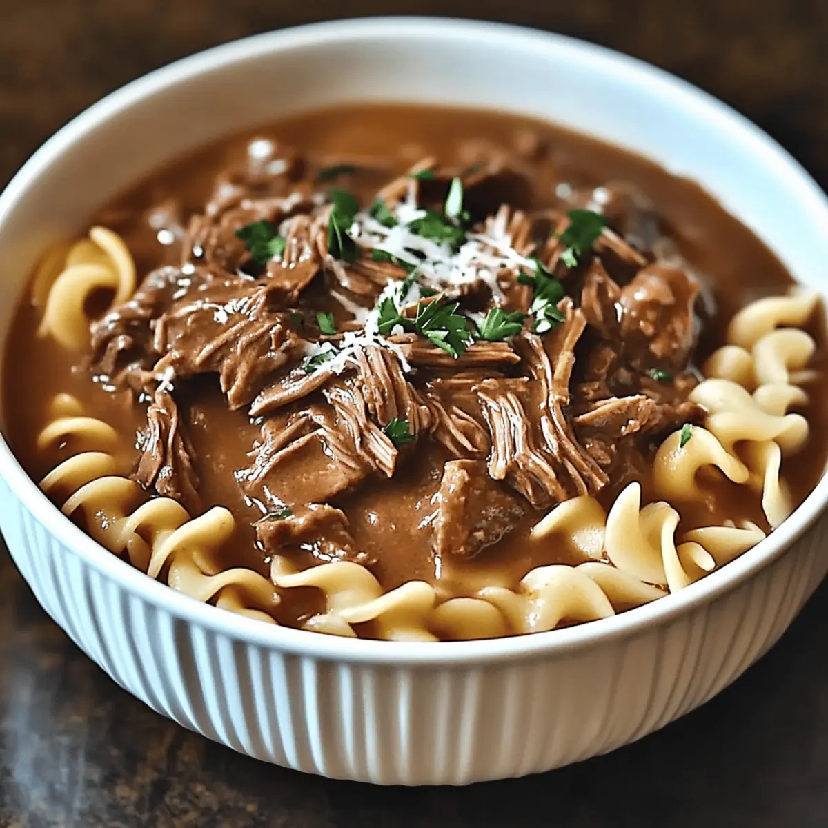 Once the noodles are cooked, taste the broth and adjust seasoning if necessary. Ladle the rich soup into bowls and garnish with fresh parsley and grated Parmesan cheese for an extra touch of flavor. Your warm and hearty Slow Cooker Beef & Noodles is ready to be enjoyed, perfect for cozy family dinners!