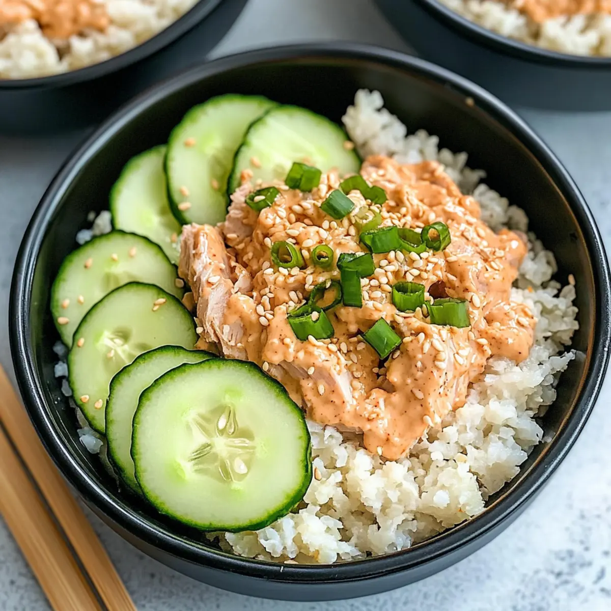 The more the merrier! You can switch things up by using canned salmon instead of tuna for a delightful twist. Additionally, toss in some diced avocado for extra creaminess or swap the cucumber for shredded carrots if you’re looking for different textures. Don’t be shy to mix in your favorite toppings—try it with seaweed salad or pickled ginger for that sushi bar feel!