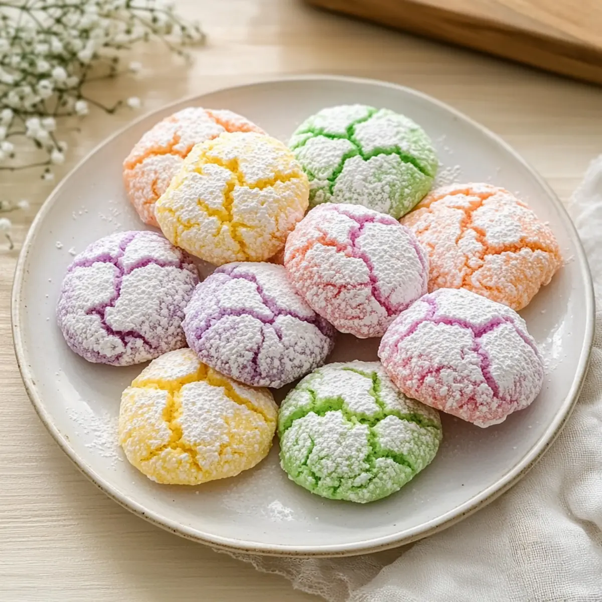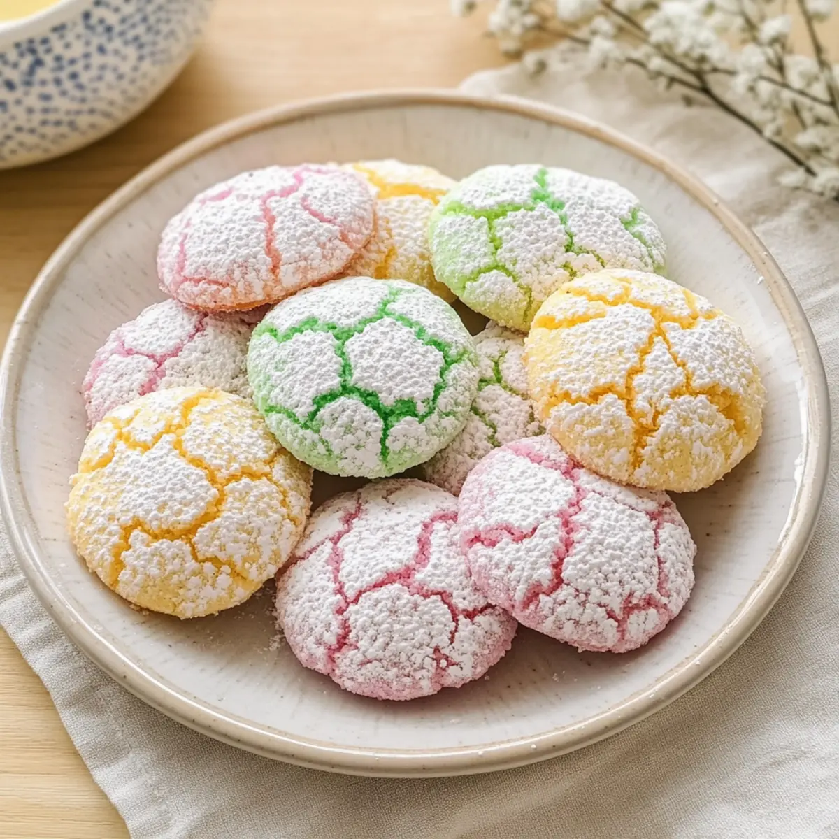 Vibrant Colors: These Springtime Crinkle Cookies burst with pastel hues that brighten any occasion, making them a visual delight.