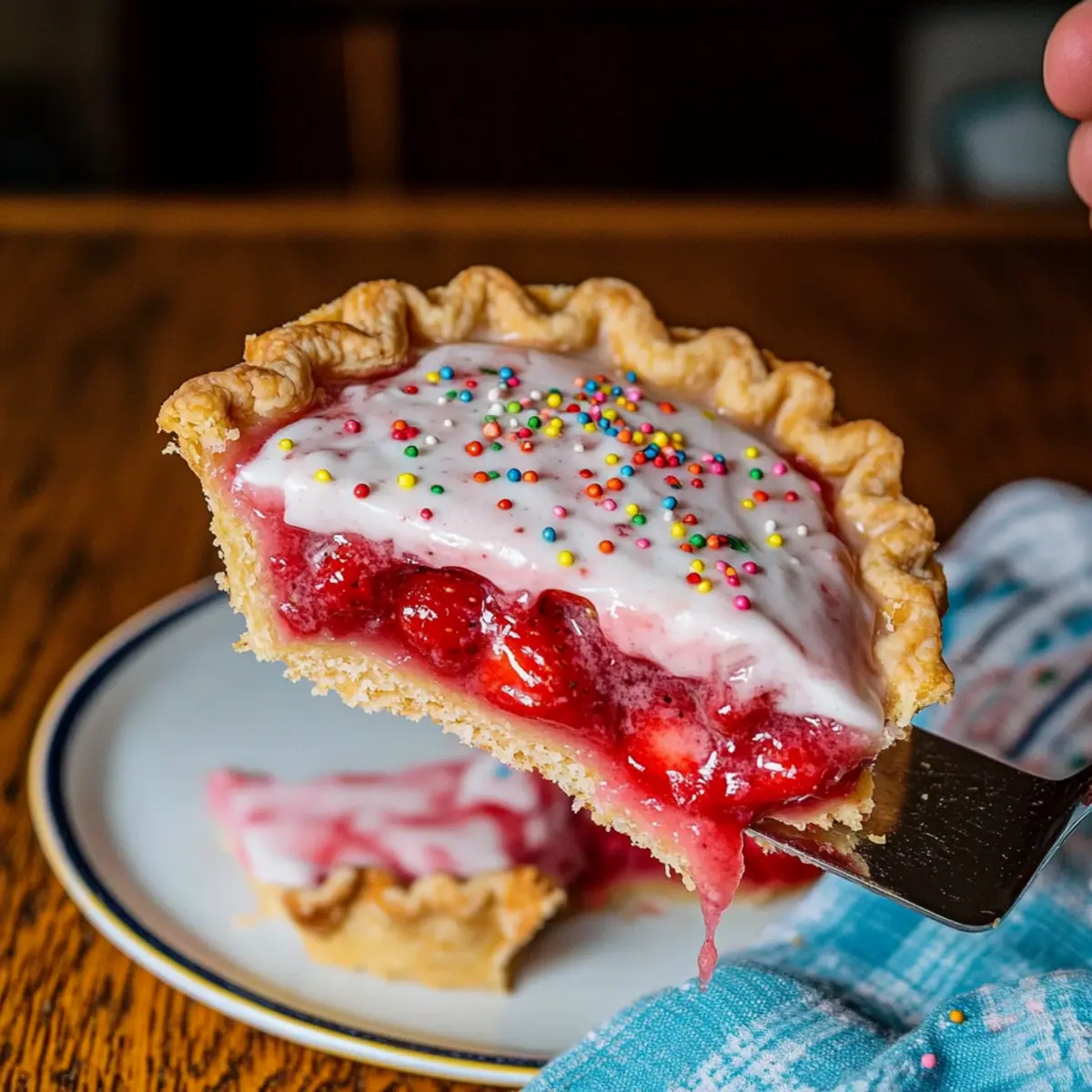 As I flipped through my grandmother’s worn recipe book, my eyes landed on the cheerful, scribbled note next to “Strawberry Pop-Tart Pie.” Instantly, memories flooded in—summer afternoons spent in the kitchen, the air sweetened by ripe strawberries and the anticipation of a delightful dessert. This pie is not just a treat; it’s a nostalgia-infused inspiration that marries the fun of childhood Pop-Tarts with the warmth of homemade goodness. What makes our Frosted Strawberry Pop-Tart Pie truly irresistible is its dynamic versatility—whether you opt for a flaky store-bought crust or decide to whip up your own, you’ll have a stunning dessert ready in no time! Perfect for spontaneous gatherings or as a whimsical breakfast, this pie will surely impress anyone at your table. Curious how to create this lovely dessert that’s packed with happiness and flavor? Let’s get baking!
