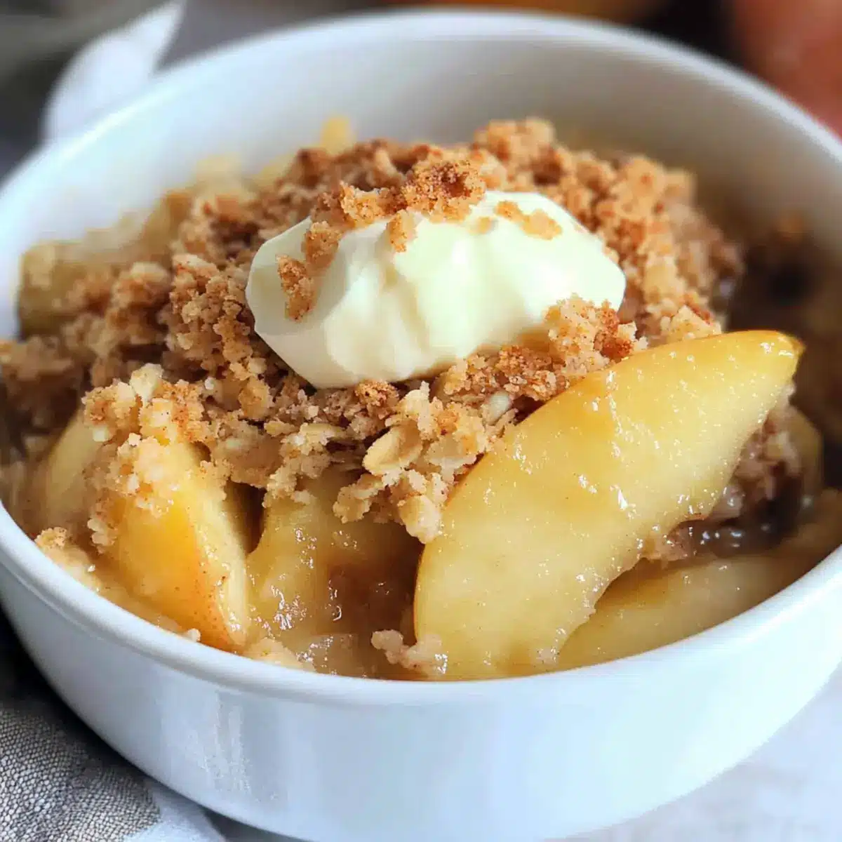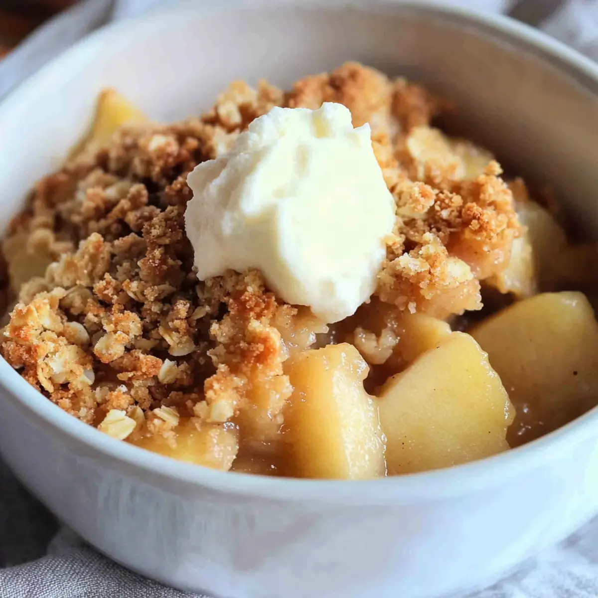Fresh Whipped Cream: Light and airy whipped cream adds a luscious touch, enhancing the crisp’s inviting flavors while keeping it light and guilt-free.