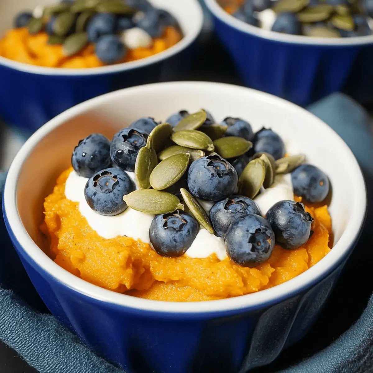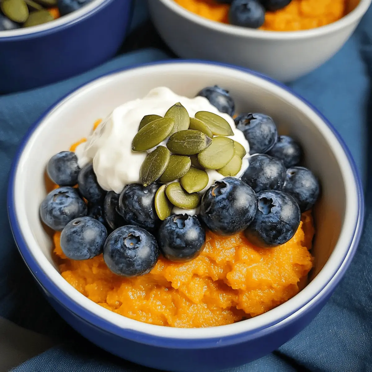 These Sweet Potato Breakfast Bowls are perfect for meal prep enthusiasts! You can prepare the sweet potato base up to 24 hours in advance by baking the sweet potatoes, cooling, peeling, and mixing the ingredients together. Store the mixture in an airtight container in the refrigerator to keep it fresh and prevent browning. Once you’re ready to enjoy, simply reheat the mixture in the microwave for about 1-2 minutes until warm. Top with fresh blueberries, pumpkin seeds, and Greek yogurt just before serving to maintain their vibrancy and crunch. This way, you’ll have a nutritious breakfast ready in no time!
