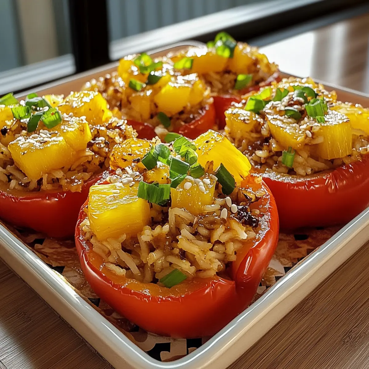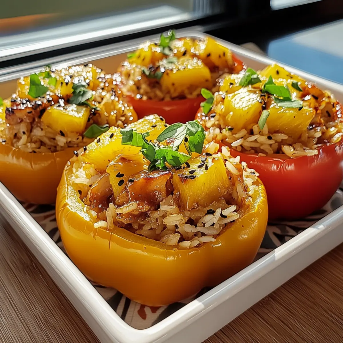 Choose Perfect Peppers: Opt for colorful bell peppers that are firm and unblemished—this ensures both taste and visual appeal in your Teriyaki Pineapple Chicken & Rice Stuffed Peppers.