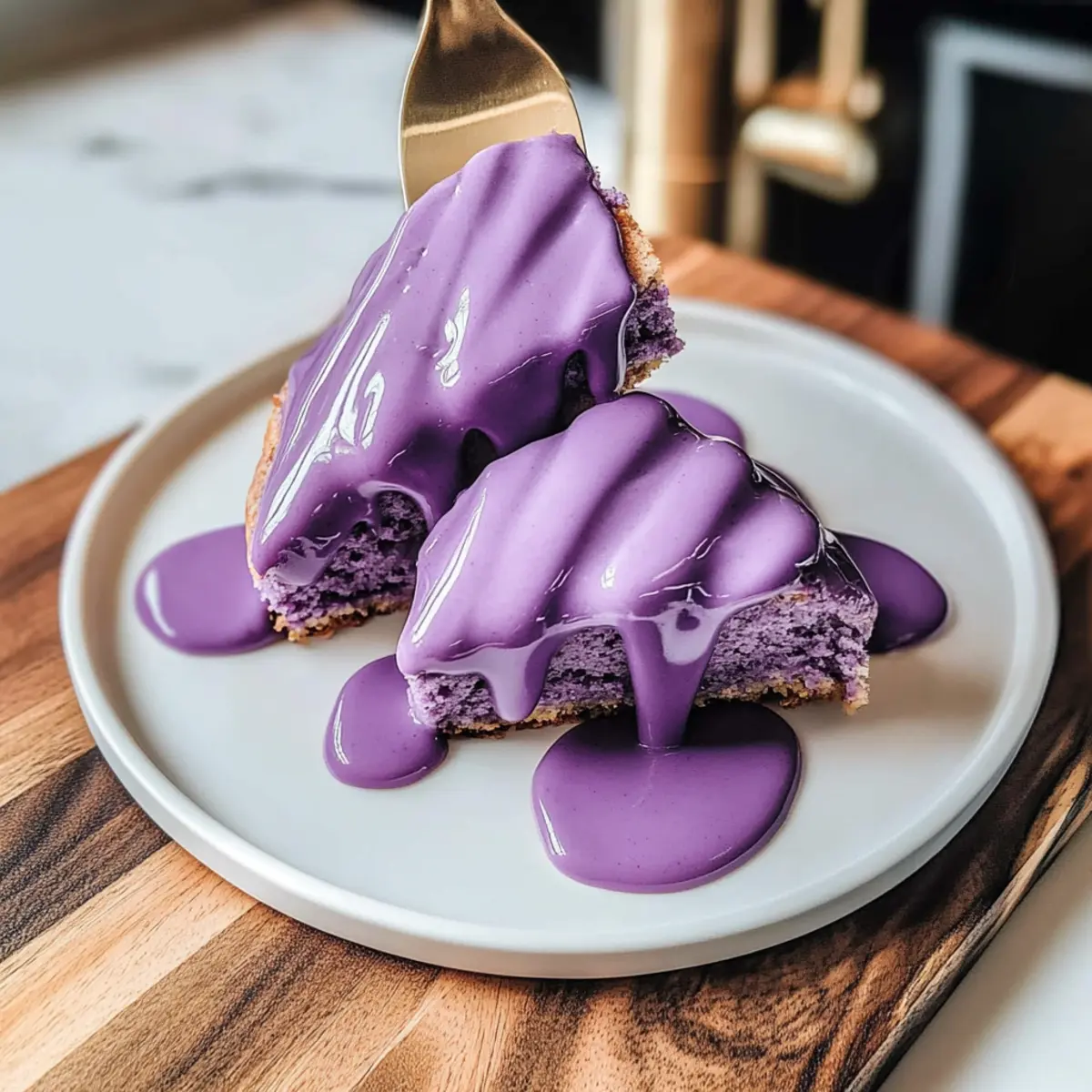 Once the scones have cooled for a few minutes, drizzle the prepared glaze generously over the top of each scone. Allow the glaze to set at room temperature for about 10 minutes. This step not only enhances the flavor but also gives your Ube Scones with Ube Glaze a stunning glossy finish that makes them picture-perfect for serving.
