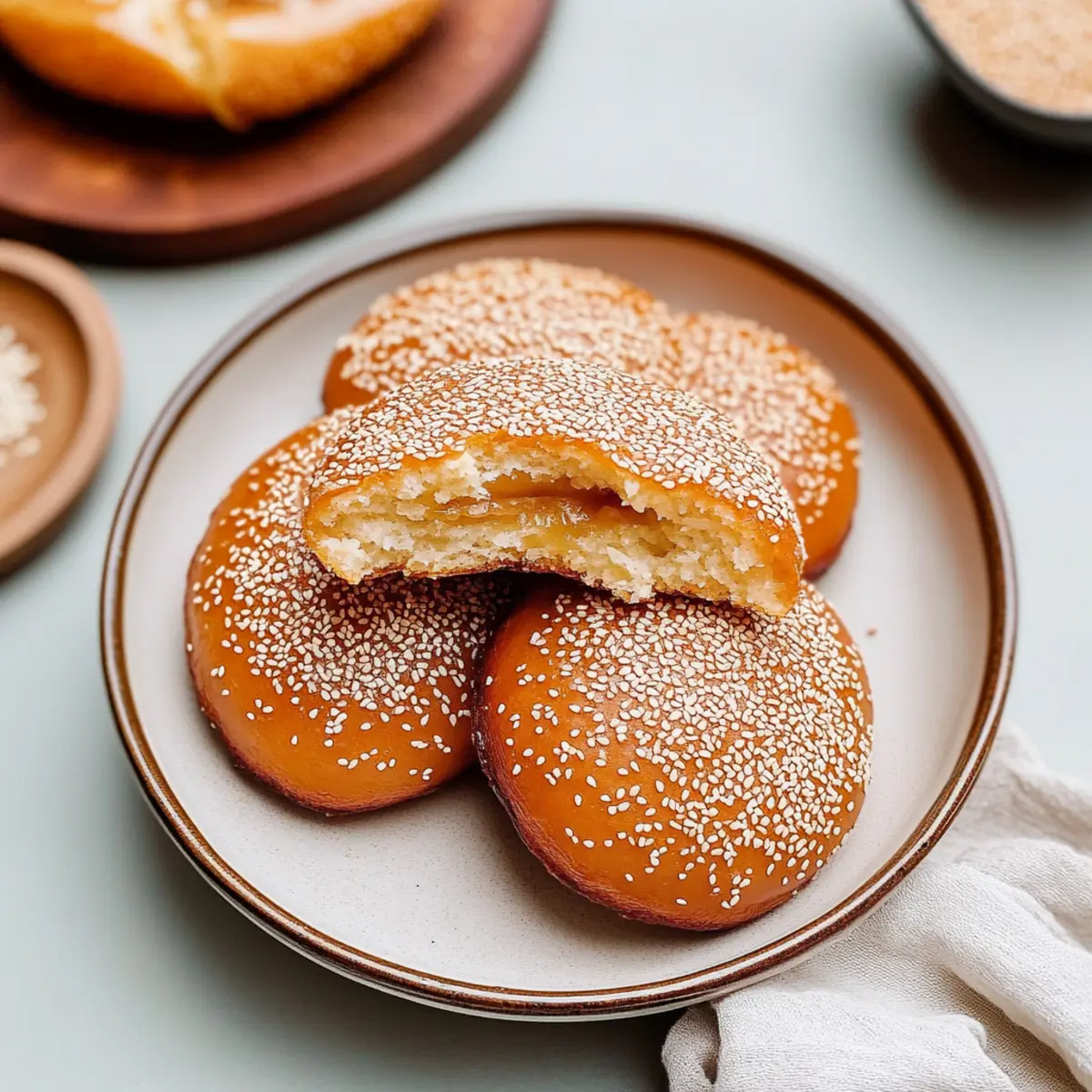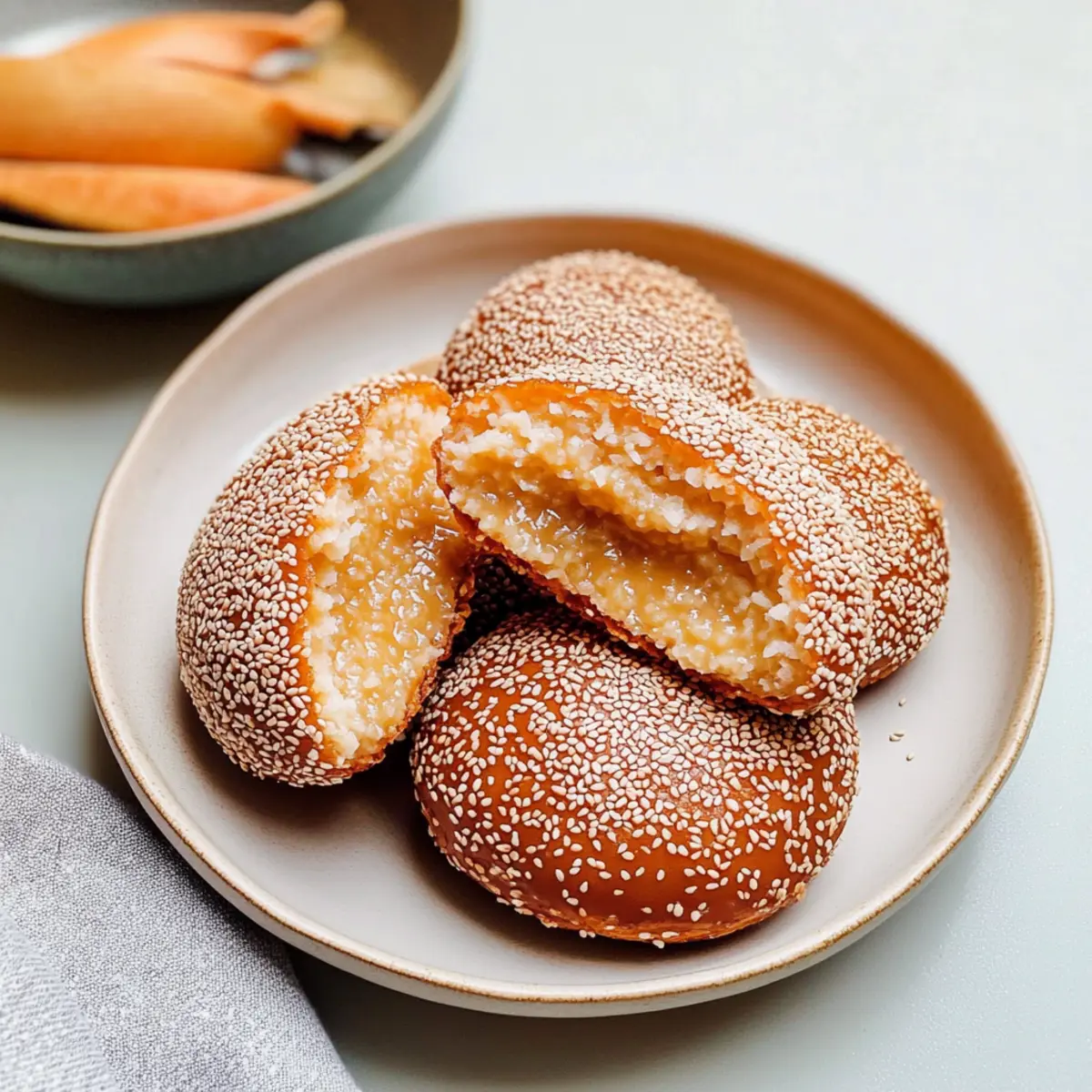Crispy on the outside: These donuts are enveloped in a glorious layer of sesame seeds that offers a satisfying crunch.