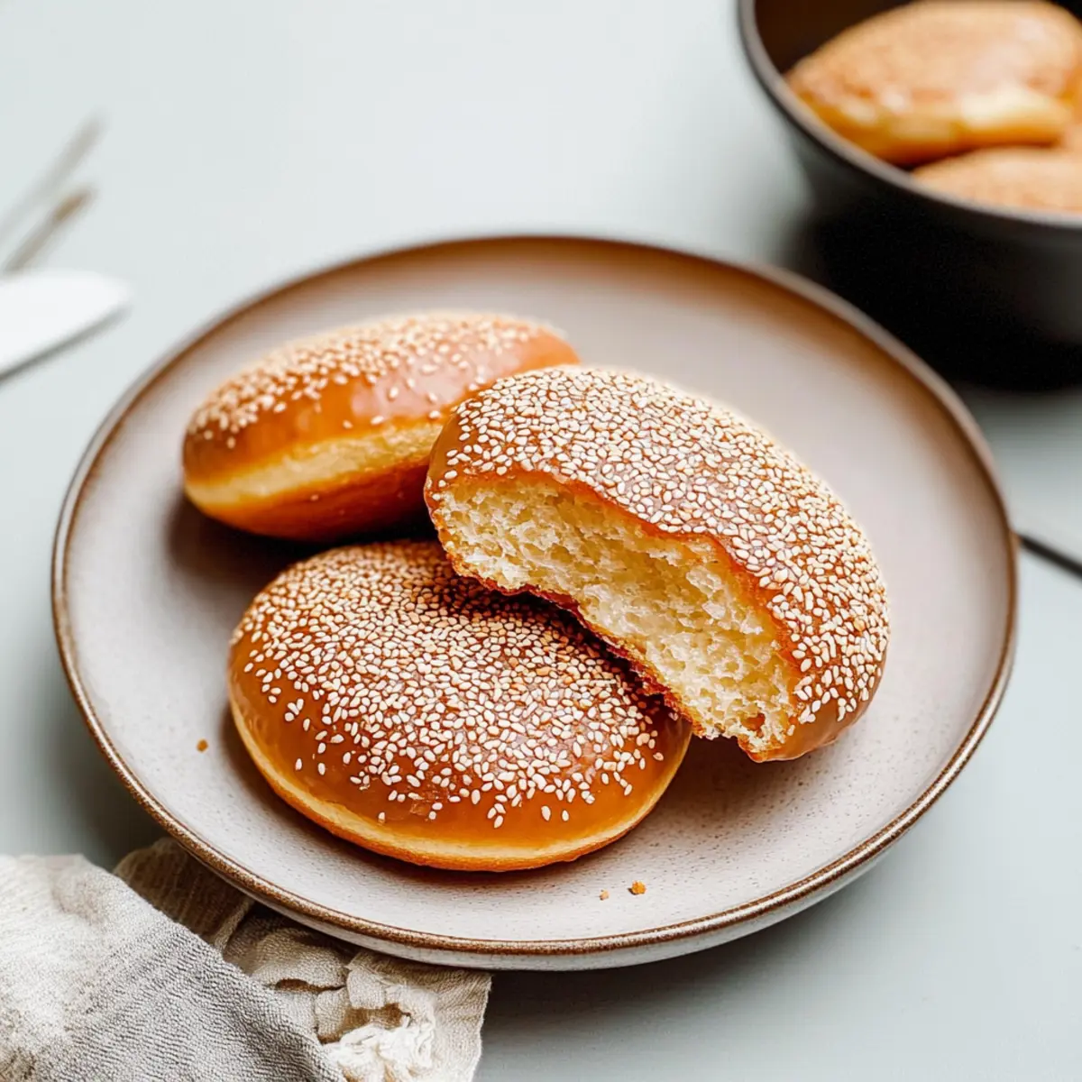 - After rising, punch down the dough, divide into six pieces, and shape each into a disc coated with sesame seeds.