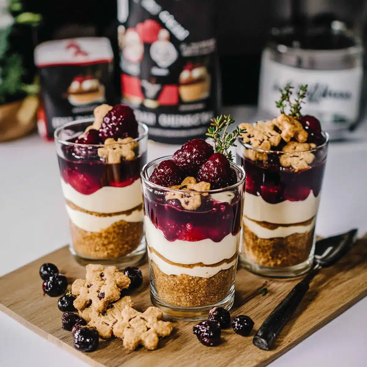 Decadent White Chocolate Cheesecakes With Mulled Wine Fruit